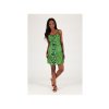 Letní květované šaty krátké na úzká ramínka a vzadu žabičková úprava.